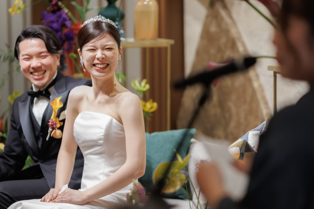当日のことで特に印象に残っているのは、新郎入場前のコメントです。僕自身は聞けていないのですが、親から、あの時点でもう涙が出そうだったと聞きました。登場もしていないタイミングで感情を動かすのは、本当にプロの技だと思います。